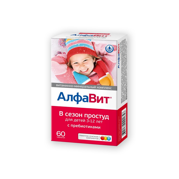 Оцените материал:Витаминный комплекс Алфавит В сезон простуд для детей от 3 до 12 лет для повышения укрепления иммунитета, нормализации микрофлоры кишечника, в том числе после приема антибиотиков. Облегчает течение и уменьшает число рецидивов инфекционно-воспалительных заболеваний. Содержит 13 витаминов и 10 минералов и пребиотики.