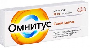 Таблетки c модифицированным высвобождением, покрытые пленочной оболочкой: индивидуальная непереносимость к действующему веществу бутамирату или к любому вспомогательному компоненту прапарата Омнитус, беременность, период лактации,