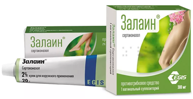Суппозитории и мазь Залаин представляют собой противогрибковое лечебное средство, активный ингредиент которого является производным бензотиофена и имидазола. Местное применение терапевтических дозировок препарата характеризуется фунгицидной и фунгистатической эффективностью. Центральный механизм действия направлен на подавление процессов синтеза эргостерола и повышение проницаемости микозных клеточных мембран, что собственно и является причиной лизиса грибной клетки.