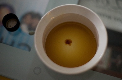 Чтобы проверить качество меда, его следует растворить в стакане теплой воды, а затем капнуть в раствор 3-4 капли раствора I. Если жидкость не изменила цвет, мед натуральный. Появление синеватых разводов может свидетельствовать о том, что в мед для загущения или увеличения веса добавлены мука или крахмал.