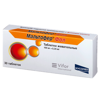 Таблетки жевательные 100 мг + 0,35 мг. По 10 таблеток в блистеры из алюминиевой фольги, ламинированной полиэтиленом. По 1 или 3 блистера вместе с инструкцией по применению помещают в картонную пачку.Цена Мальтофер Фол, где купить