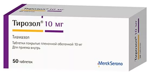 1 таблетка может включать 5 мг или 10 мг тиамазола.