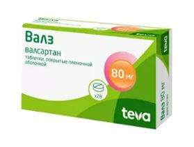 1 таблетка Валз 80 мг содержит действующее вещество: валсартан 80 мг;