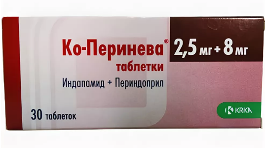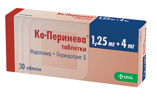 Ко-Перинева– комбинированный препарат, содержащий ингибитор ангиотензинпревращающего фермента (АПФ) – периндоприл и тиазидоподобный диуретик – индапамид. Препарат оказывает антигипертензивное, диуретическое и вазодилатирующее действие.