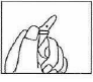 Расположить кончик ампулы точкой кверху! Осторожно постукивая пальцем и встряхивая ампулу, дать раствору из кончика ампулы стечь вниз.