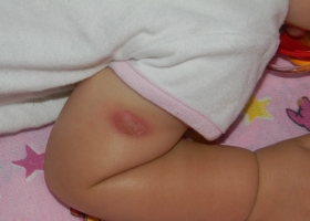 Прививочная реакция выглядит следующим образом: образуется пустула, папула, отмечается несильное нагноение в месте, куда была введена вакцина. Постепенно, через 2-3 месяца, рана заживает. На месте этой раны должен остаться небольшой рубец. Если таковой отсутствует, значит, вакцина была введена неправильно. Ранка может заживать до 4 месяцев.