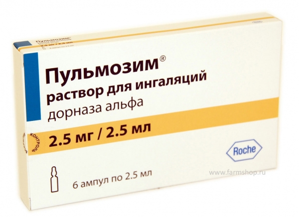 В 1 мл средства Пульмозим содержится 2,5 мг или 2500 ЕД дорназа альфа.