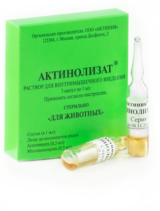 Актинолизат через специфические внутриклеточные рецепторы иммунокомпетентных клеток воздействует на иммунную систему, стимулирует продукцию антител к различным инфектантам, разрушает актиномицеты, повышает резистентность организма, оказывает противовоспалительное действие, усиливает аппетит, снимает усталость, способствует общей активности.Показания препарата