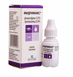 В 1 мл глазных капель Мидримакс содержится 50 мг фенилэфрина гидрохлорида и 8 мг тропикамида.