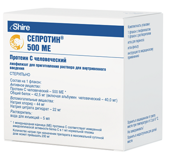 Как и в случае других препаратов для внутривенного введения, возможны аллергические реакции. Пациенты должны быть информированы о ранних признаках реакций гиперчувствительности, таких как: ангионевротический отек, жжение и болезненность в месте введения, озноб, гиперемия, кожная сыпь; крапивница, в том числе, генерализованная; головная боль, артериальная гипотензия, заторможенность, тошнота, беспокойство, тахикардия, ощущения стеснения в груди, ощущения покалывания, рвота и свистящее дыхание. Пациенты должны быть проинструктированы о необходимости немедленно обратиться к лечащему врачу при появлении эти симптомов. В ходе исследований был повышен С-реактивный белок. Сообщения о повышенной температуре и повышенном уровне С-реактивного белка относились к одному и тому же субъекту. Если препарат применяется у пациентов с тяжелым врожденным дефицитом протеина С, могут развиться антитела, ингибирующие активность протеина С. Перечень всех побочных эффектов представлен в инструкции по медицинскому применению. Передозировка. Какие-либо сообщения о симптомах передозировки препарата Сепротина отсутствуют. Взаимодействие с другими лекарственными средствами и другие формы взаимодействий. На сегодняшний день взамодействие препарата Сепротин с другими лекарственными средствами не отмечено. У пациентов, начинающих лечение пероральными антикоагулянтами из группы антагонистов витамина К (например, варфарином), до наступления антикоагулянтного эффекта возможно преходящее состояние гиперкоагуляции. Именно по этой причине при переводе пациента на прием пероральных антикоягулянтов заместительную терапию протеином С следует продолжать до наступления стабильного антикоагулянтного эффекта. Несовместимость. Поскольку исследования по оценке совместимости препарата Сепротин не проводили, препарата Сепротин не следует смешивать с другими препаратами.