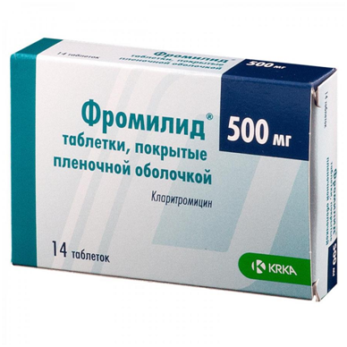 Таблетки Фромилид, покрытые пленочной оболочкой, 250 мг, 500 мг.По 7 таблеток в блистере из комбинированного материла ПВХ/ПВДХ и фольги алюминиевой.