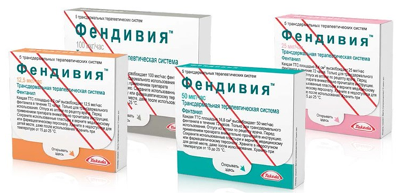 Фендивия TM 25 мкг/час: каждая ТТС содержит 2,75 мг фентанила в пластыре площадью 8,4 см2 и высвобождает фентанил со скоростью 25 мкг/час.