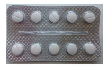 Таблетки, покрытые пленочной оболочкой белого цвета, круглые, двояковыпуклые, с риской, на поперечном разрезе ядро белого или почти белого цвета.