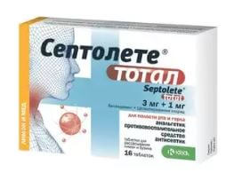 Препарат Септолете тотал не следует применять одновременно с анионными соединениями (например, присутствуют в зубной пасте).