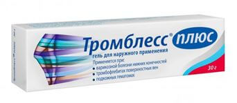 Один г. Тромблесс Плюс геля содержит, активное вещество: гепарин натрия – 1000 МЕ (8,33 мг при активности гепарина натрия 120 МЕ/мг), троксерутин – 20,0 мг, декспантенол – 100,0 мг, бензокаин – 1,0 мг;