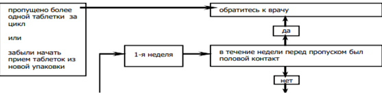 • Пропущена таблетка в первую неделю приёма упаковки и был половой контакт за семь или менее дней до этого;