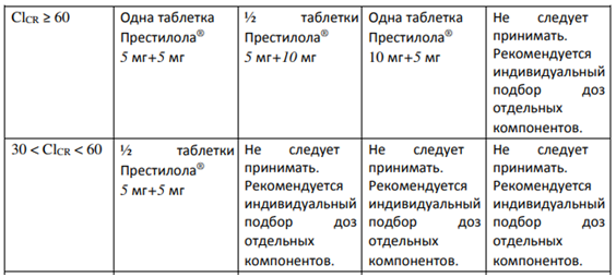 Для дозировки Престилол 5 мг+5 мг