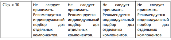 • Одновременное применение с препаратами, содержащими алискирен, у пациентов с сахарным диабетом или нарушением функций почек (СКФ<60мл/мин/1,73м² площади поверхности тела) (см. разделы «Фармакодинамика» и «Взаимодействие с другими лекарственными препаратами»)