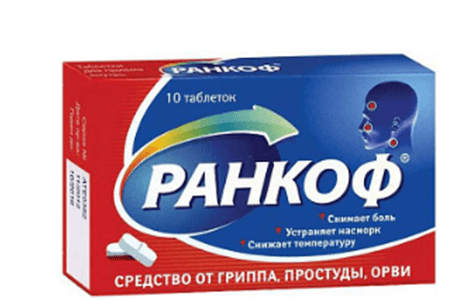 Лекарственный препарат Ранкоф, является комбинированным средством, оказывает жаропонижающее, анальгезирующее, альфа-адреностимулирующее, вазоконстрикторное и антигистаминное действие, устраняет симптомы простуды.