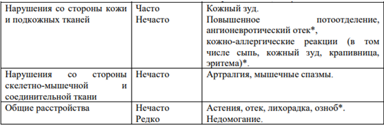 *- нежелательные эффекты, выявленные при постмаркетинговом применении адеметионина («спонтанные» сообщения), не наблюдавшиеся в ходе клинических исследований, были отнесены к числу нежелательных эффектов с частотой встречаемости «нечасто» на основании того, что верхний предел 95 % доверительного интервала оценки встречаемости не превышает 3/Х, где Х=2115 (общее количество субъектов, наблюдаемых в клинических исследованиях).