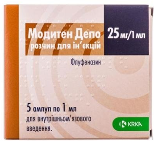 Если пациент ранее не получал фенотиазины, назначают Moдитен® в таблетках, а затем переводят на инъекции пролонгированного действия.